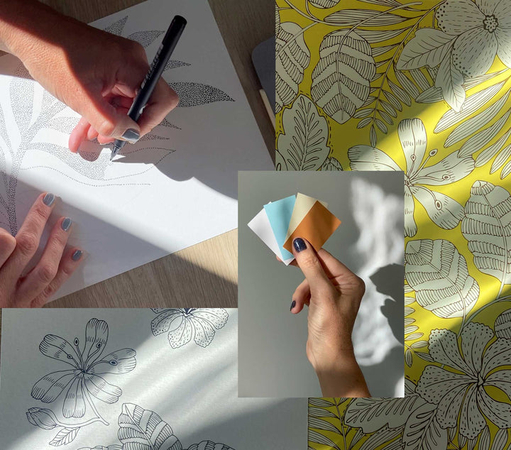 Todos los diseños están dibujados a mano, prestando la máxima atención a la delicadeza del trazo, la naturaleza de la composición y, sobre todo, la combinación y aplicación de los colores.