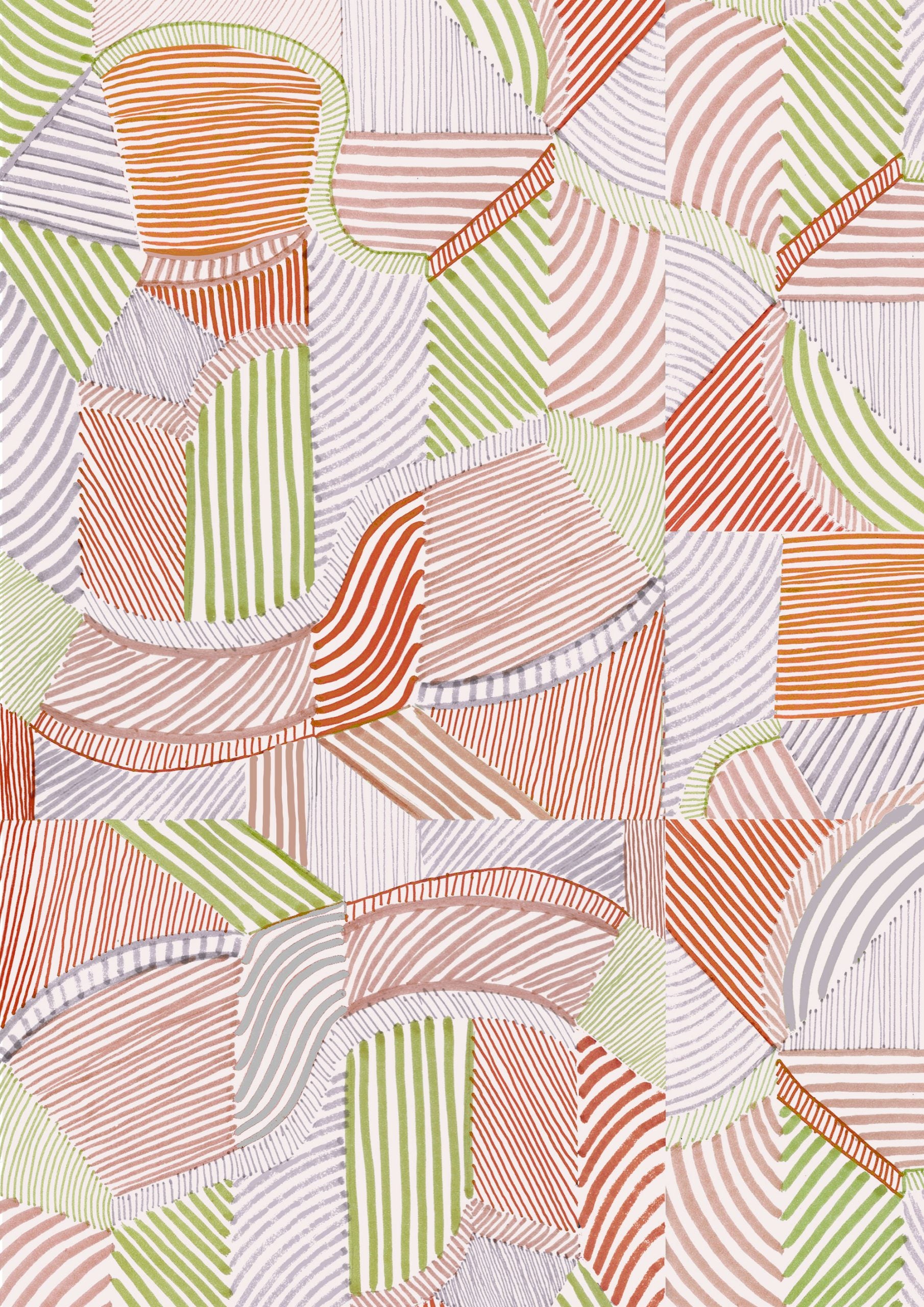 Una intrincada composición de coloridas rayas dibujadas a mano que crean un movimiento dinámico.