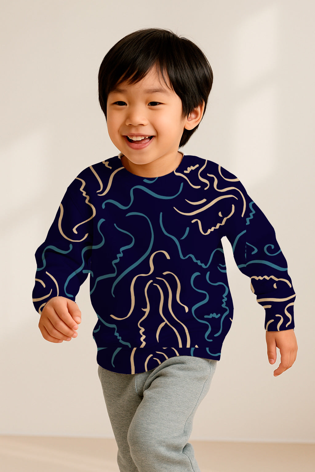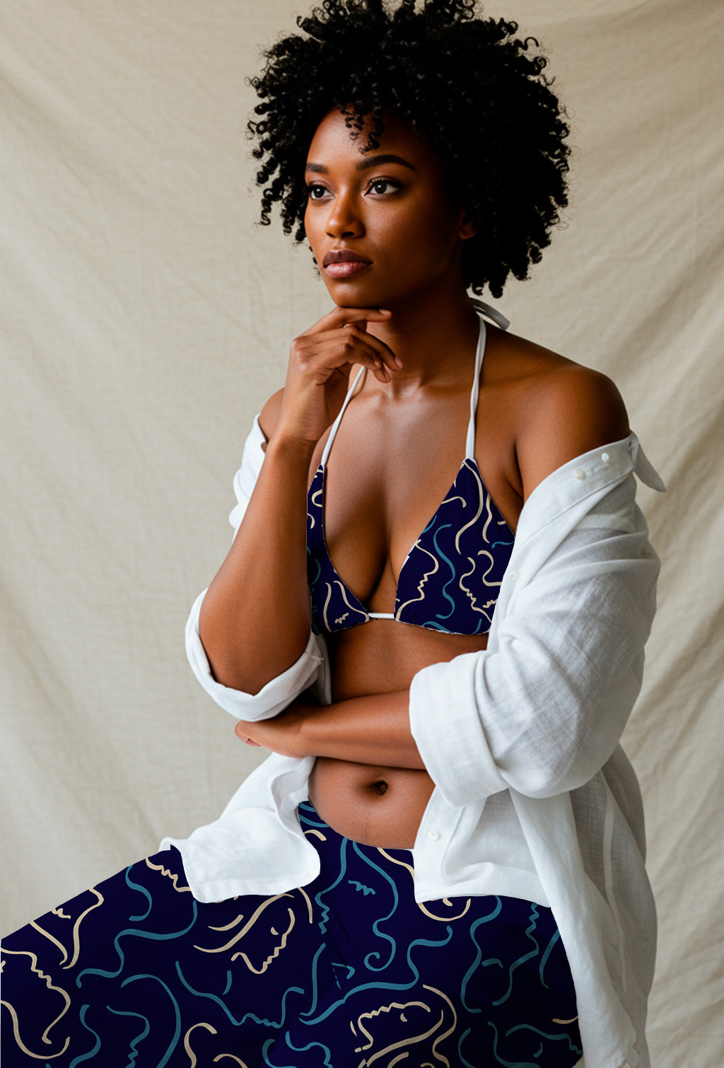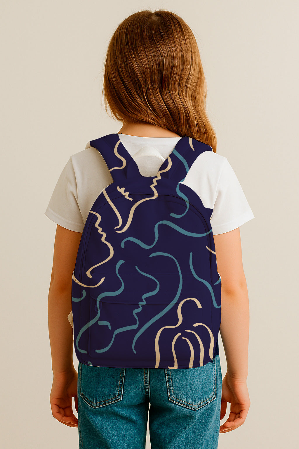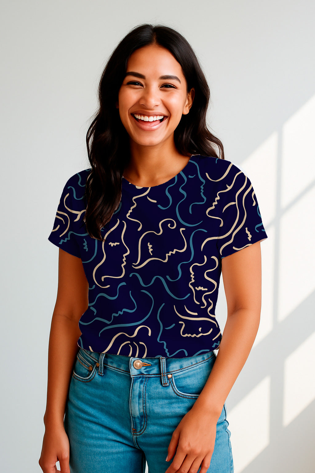 Siluetas de rostros en tonos crema y azul sobre un fondo azul marino intenso.