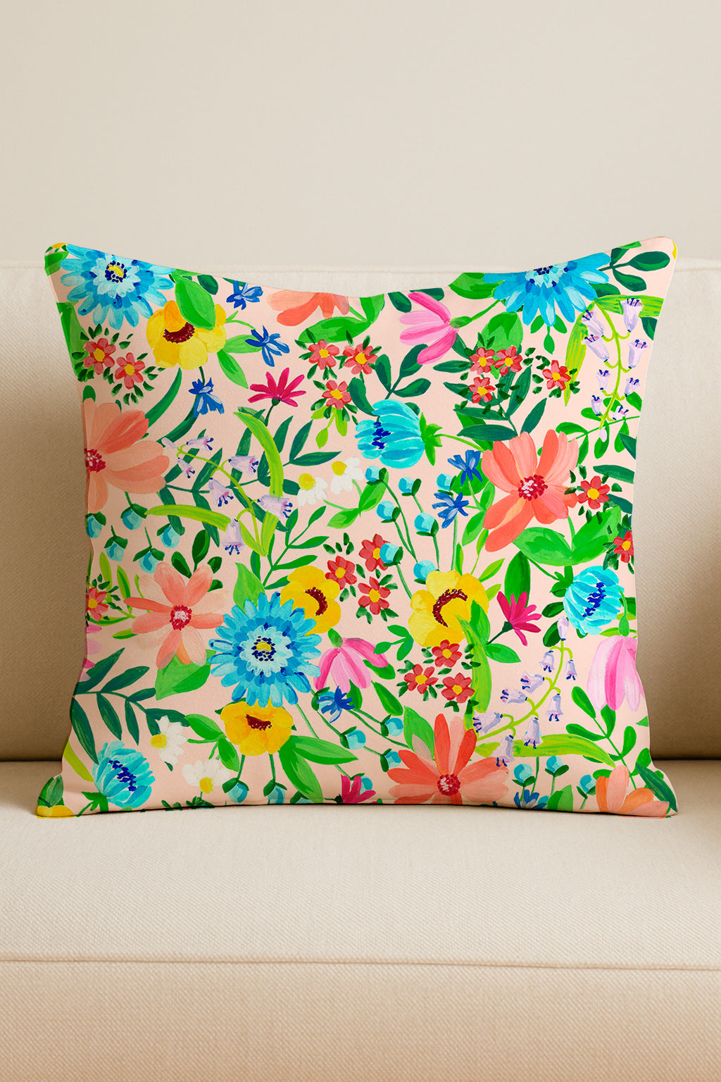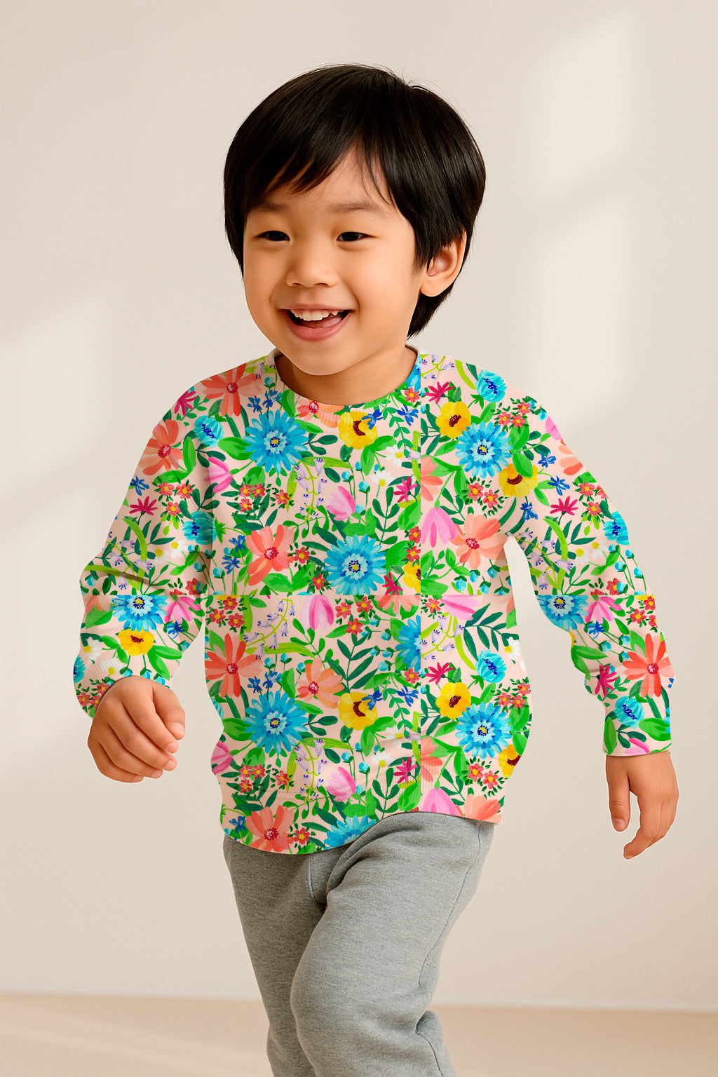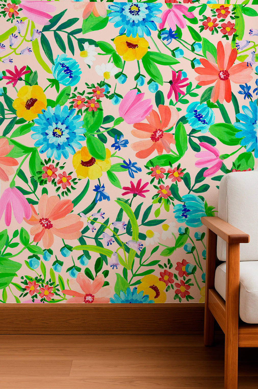 Intrincados motivos florales y de hojas inspirados en el arte popular sobre un fondo azul celeste. Paleta de colores detallada y armoniosa.
