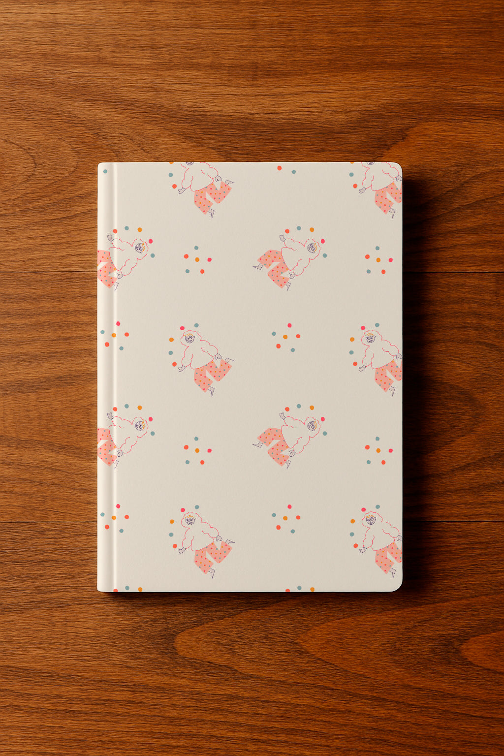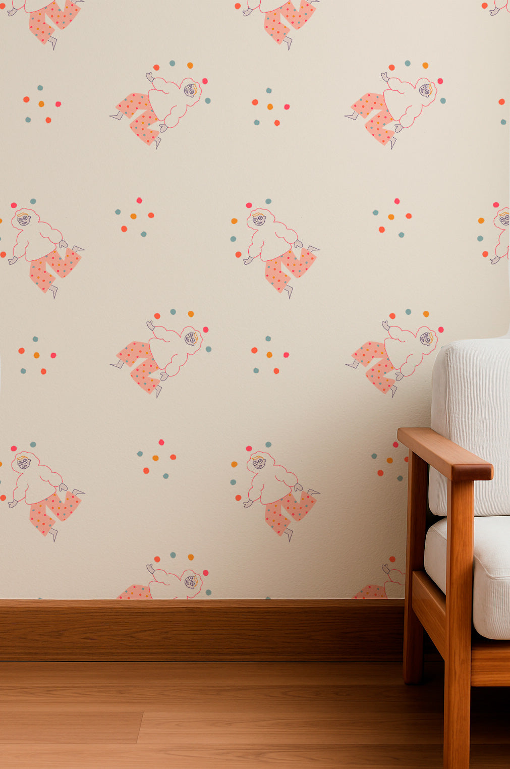 Fondo color crema con payasos juguetones que hacen malabares con puntos de colores. Ligero, divertido e inspirado en el circo.